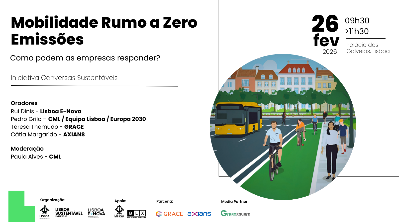 Nesta Conversa Sustentável, juntamos Lisboa E-Nova, Câmara Municipal de Lisboa, GRACE - Empresas Responsáveis e Axians.